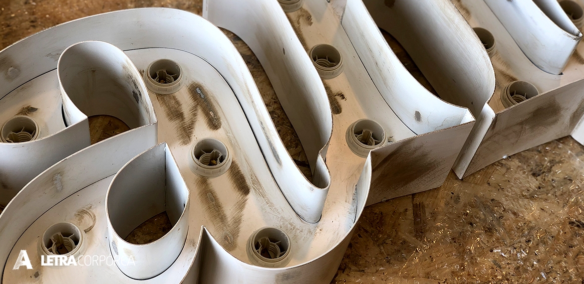Elles sont fabriquées en aluminium laqué, la face est perforée pour incruster les ampoules et soudée à la moitié de la lettre, de cette façon les ampoules reste sur la partie intérieure de la lettre. Elles ont une semelle en PVC pour l'installation.